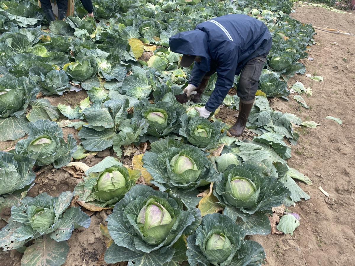 坂里冬令三寶陸續採收,高麗菜、白菜與白蘿蔔分批進入採收階段,後續將整理裝箱作業進行。(圖/文:鄭禮頤)