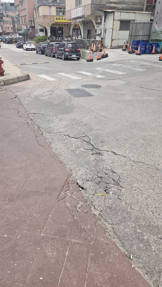 縣府銜接(原介壽堂)前路面破損將進行修補開挖(位置如照片所示),預計工期2天並自本(2/6)日下午放置交通錐,請用路人減速慢行或改道行駛。