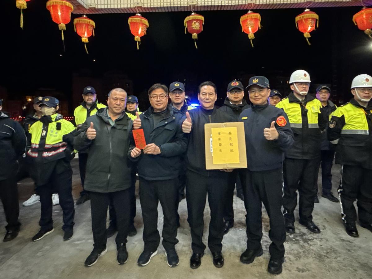 「115年加強重要節日安全維護工作」昨日晚間正式啟動,縣長王忠銘、民防大隊長林明揚慰勉執勤警憲民防,表達感謝與敬意。(圖/文:王致潔)