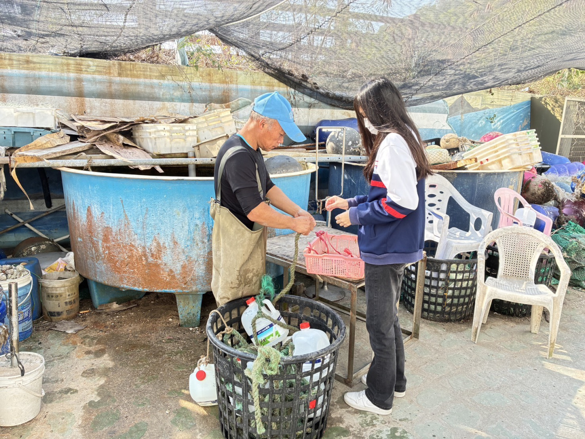 不過,夾苗實習也有很多具體的限制。由於海帶苗非常嬌嫩,操作時若稍有著急,就容易損傷幼苗根部。這種「欲速則不達」的過程磨練了我的心性,讓我學會從失敗中調整動作。透過實際參與準備苗繩、分苗到固定幼苗的五個步驟,我掌握了水產養殖最紮實的基礎技術。