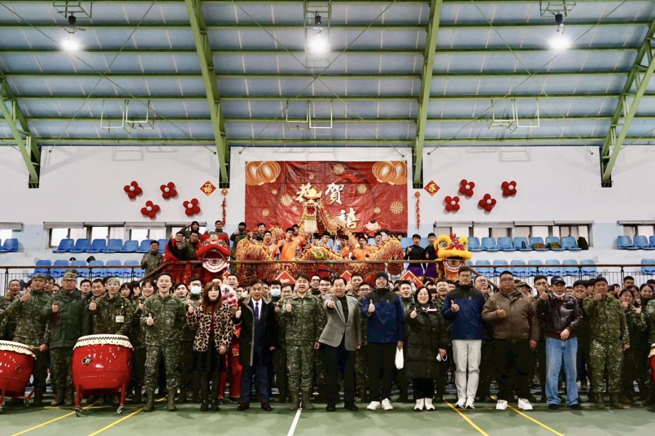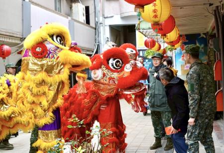 活動在熱情奔放的鼓陣中揭幕,緊接著舞龍舞獅穿梭場中,象徵驅邪納吉、招財納福,贏得滿場掌聲與喝采。團拜儀式簡單隆重,凝聚軍民情誼,共同為地方祈願新歲平安順遂、百業興旺。