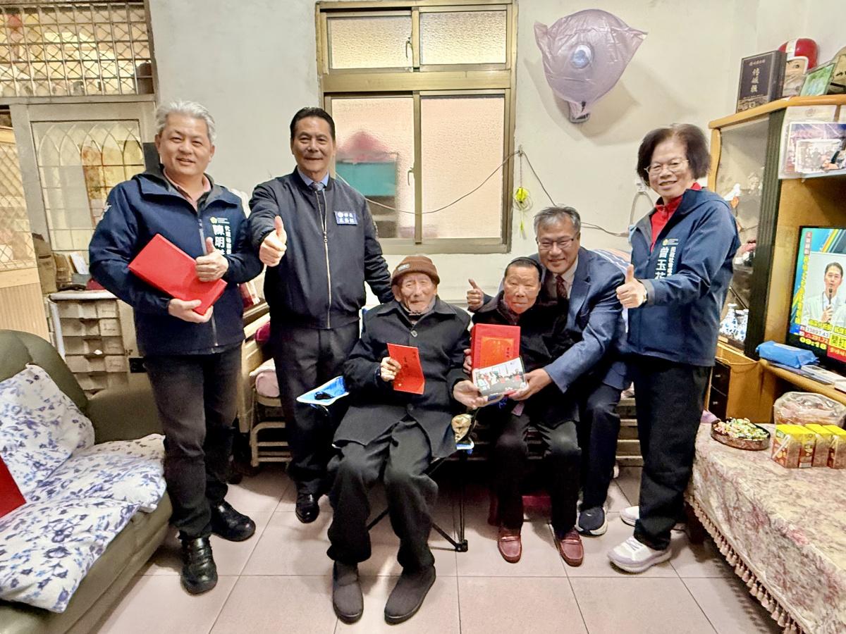 【記者王致潔報導】開春大喜!農曆春節期間適逢多位長輩壽辰,包括清水村陳鶯金女士91歲大壽,以及復興村曹佬福先生、介壽村曹金俤先生90歲大壽;縣長王忠銘特別在開工首日偕同代理秘書長陳明傑、民社處長曾玉花及南竿鄉長林志東登門祝壽,為長者送上新春第一份祝福,關心生活近況並致贈金戒指與長者生日禮金等賀禮,現場氣氛喜氣洋洋。