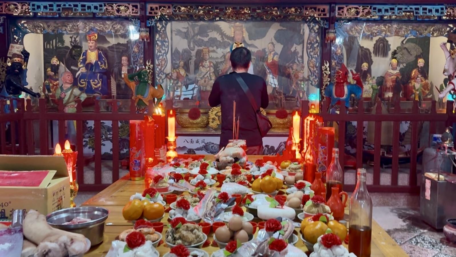 東莒福正境天上聖母廟正月初八舉行擺暝祭典,廟方備妥供桌與祭品,並迎請境內白馬尊王作客,為馬祖今年擺暝活動熱鬧揭序。(圖/文:蔡夢玲)