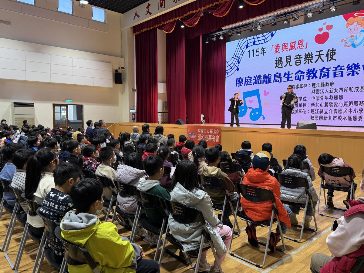 【記者王致潔報導】昨(24)日,115年「愛與感恩」遇見音樂天使-廖庭澔離島生命教育音樂會於介壽國中小及仁愛國小舉辦,共吸引逾450位師生參與。活動由生命鬥士兼音樂天使廖庭澔、蕭琮祐及陳奕涵帶來音樂演奏及啟發人心的生命故事,深深感動在場師生。