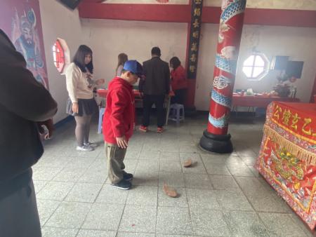 橋仔正月十四各宮廟開放祈福體驗,信眾擲筊、求籤、過火祈安,廟方解籤加持,展現濃厚信仰文化氛圍。(圖/文:鄭禮頤)