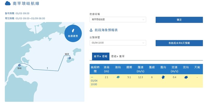 因交通部中央氣象署預報顯示,115年03月04日 因海象不佳,基於旅客安全及航行風險評估,本航線將於上述期間停航一日,敬請旅客留意並見諒。