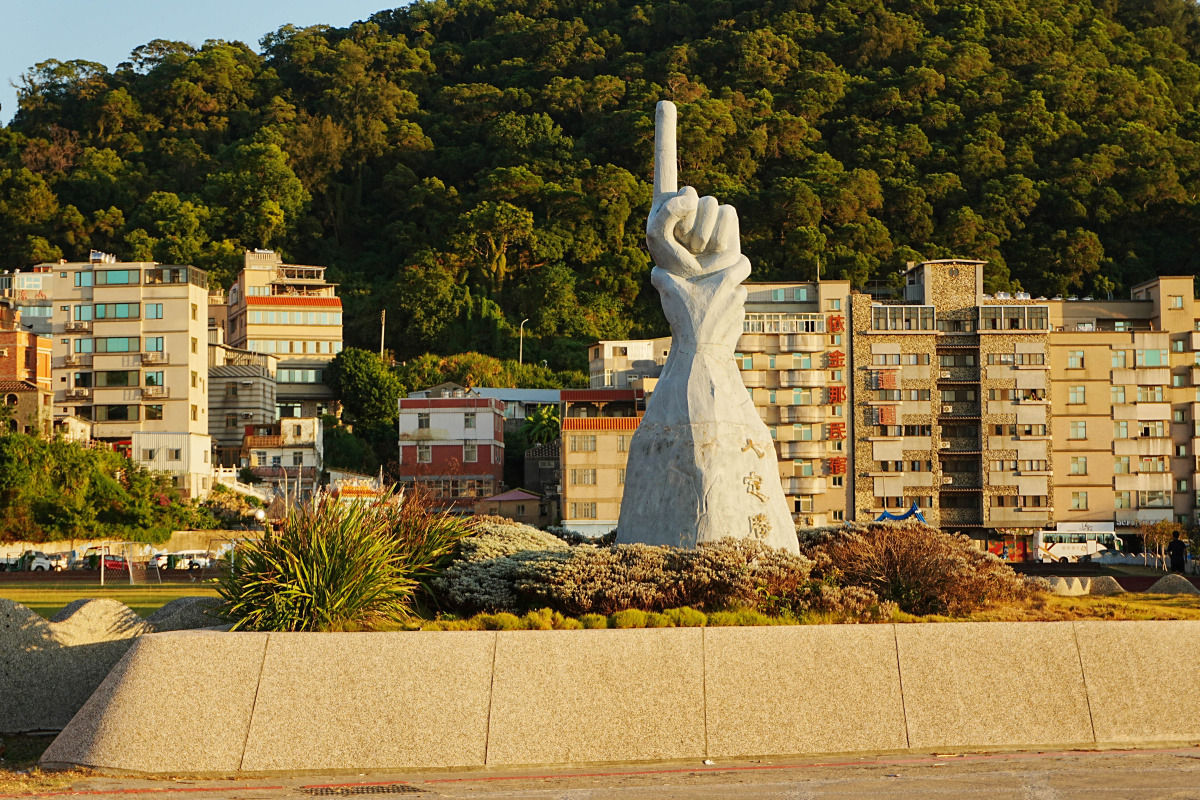 船抵南竿福澳港,最先映入眼簾的是,雙手擎天的「人定勝天」雕塑,巨大的作品,隱隱透著馬祖居民堅如磐石、不屈不撓的意志。