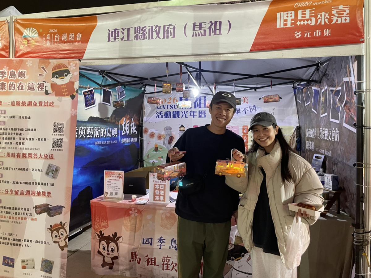 【本報訊】2026臺灣燈會於嘉義盛大登場,連江縣政府特別跨海參展,於《主燈區百搭星亮點》打造專屬「馬祖觀光形象攤位」,以「四季馬祖,嶼眾不同」為主題,現場更推出詢問度極高的限量「黃魚公車」造型小提燈,獲得遊客好評迴響。