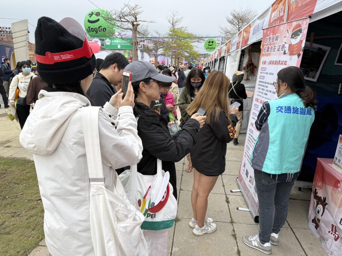 除了燈會現場的靜態與互動展示,縣府也積極推廣即將到來的年度盛事。馬祖攤位布置今年度最重要的「2026馬祖活動觀光年曆」及摺頁介紹。現場工作人員也熱情邀請遊客到馬祖體驗獨特的做出幼、燒塔節、昇天祭、國際藝術島等文化體驗活動。