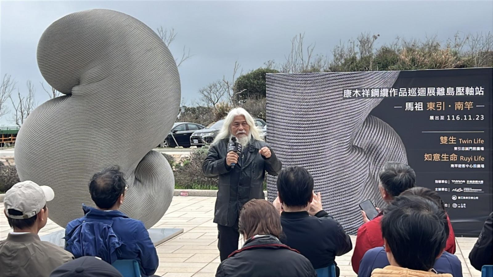 【記者馮紹夫報導】一條鋼纜串起世界。台灣雕塑家康木祥鋼纜作品《雙生》、《如意生命》在東引、南竿展出,昨(5)日舉辦開幕,康木祥分享創作理念與作品意象,他希望藉由作品為馬祖帶來藝術美學、環境永續理念。
