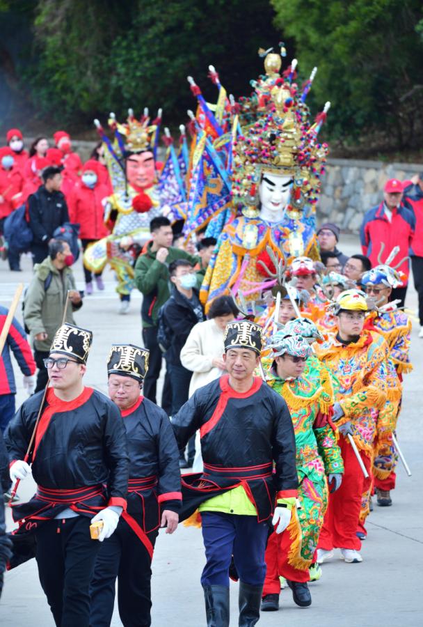 遶境隊伍由「保長公」前導開路,隨後依序為旗鑼、高照、舞龍、「敬神如神在」、「肅靜」、「迴避」牌、鼓板、香亭,以及八爺、七爺、孩仔、皂班、八將、水火將軍、太子、小王爺等神將陣頭;其後接續旗隊、馬奴、香案、令箭、夫人鑾駕、掌扇、涼傘與尊王鑾駕等,隊伍綿延約兩、三百公尺,場面壯觀。迎神行經中柱港、中正路、精神堡壘、獅子村、酒廠、北澳村,再轉往南澳地區民生國宅、九棟、十二棟、三義村及軍郵局前廣場等地,沿途信眾「擺宴」酬謝神恩,焚香祝禱,祈求闔家安康。陣頭所到之處,鞭炮聲震天作響,煙霧繚繞,整座島嶼沉浸在慶典的歡騰氛圍中。