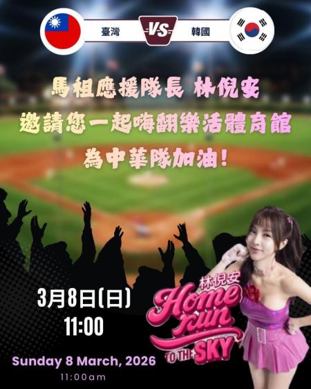 【本報訊】2026世界棒球經典賽(WBC)開打,縣府特別在樂活體育館轉播C組預賽所有賽事,3月8日11:00的「台韓大戰」,教育處特別邀請網紅林倪安擔任主持人,歡迎民眾到場一起為中華隊加油!