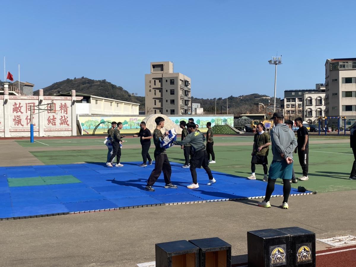彩排過程中,官兵分組進行對練與動作示範,配戴護具進行戰技訓練,並由教官在旁指導調整動作與節奏。透過反覆練習與彼此配合,逐步修正細節,使整體動作更加整齊流暢,展現平日紮實訓練成果。