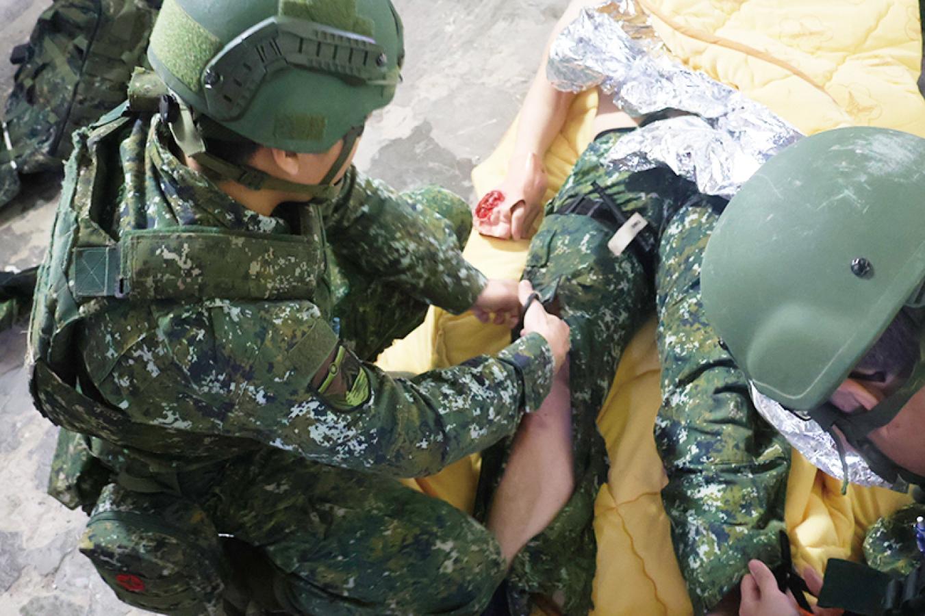 戰傷救護師資馬教官表示,戰傷救護並非單純背誦流程,而是必須與戰術運用、任務分工及團隊默契緊密結合,成為官兵必備的戰鬥技能之一,唯有在實際戰術情境中反覆演練,才能在關鍵時刻發揮最大效能。