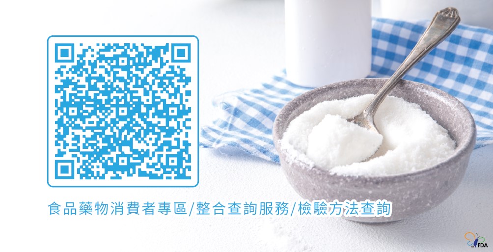 此外,製造或進口廠商除落實自主管理外,也可將產品送驗,除遵循食品添加物「用量少即可達到使用之目的」原則外,更應確認產品檢驗結果符合法規標準。而為防止甜味劑的不當使用,衛生福利部公告「食品中甜味劑之檢驗方法─多重分析(MOHWA0030.00)」,此方法除供製造業者用來確認產品外,也提供衛生單位稽查使用,以共同為消費者把關。詳細的檢驗方法內容可掃描右方QR code至「食品藥物消費者專區」查詢(食品藥物消費者專區 / 整合查詢服務 / 檢驗方法查詢)。