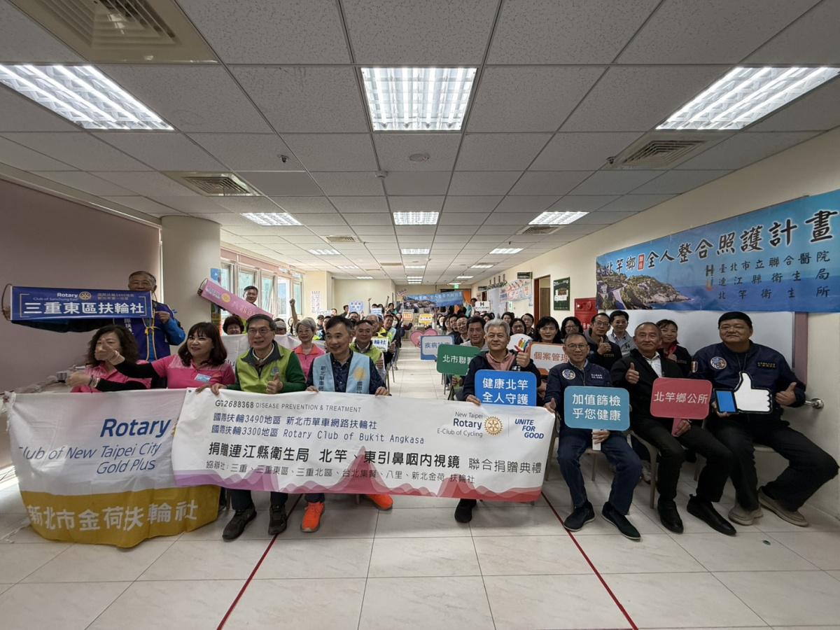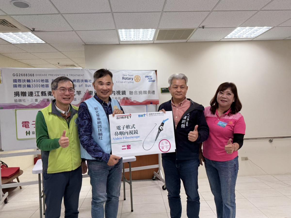 【記者鄭禮頤報導】為提升離島醫療服務品質,臺北市立聯合醫院自114年起承接連江縣北竿鄉「全民健保偏鄉全人整合照護方案」,結合公益與服務性團體資源,持續導入醫療服務守護離島居民健康。17日偕同新北單車網路扶輪社及國際扶輪3490地區等單位,於北竿社福館舉行醫療設備捐贈儀式,由新北單車網路扶輪社捐贈北竿及東引衛生所「耳鼻喉科軟式鼻咽內視鏡」各一台,提升在地診療量能。