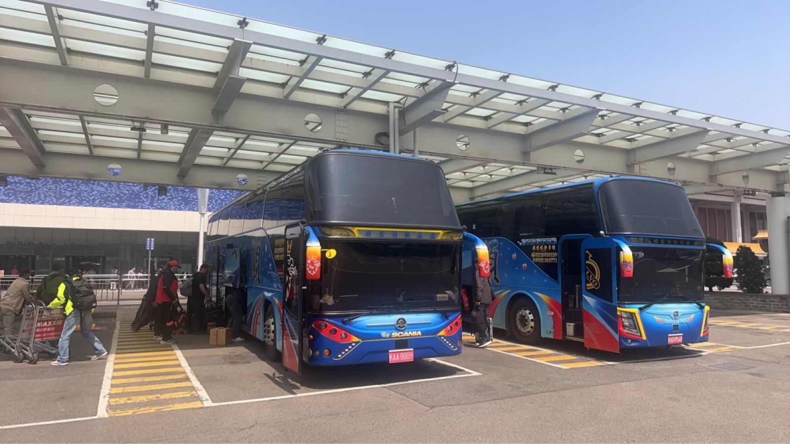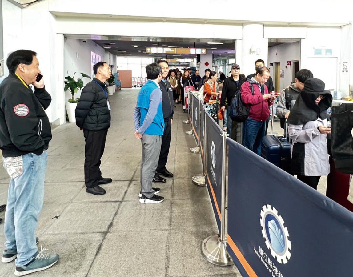南北之星25日再次啟動疏運,縣長王忠銘、議長張永江前往福澳港關心疏運動態,往返載客446人;交旅局首次試辦松山機場往台北港客運,方便民眾前往搭船。(圖:交旅局)