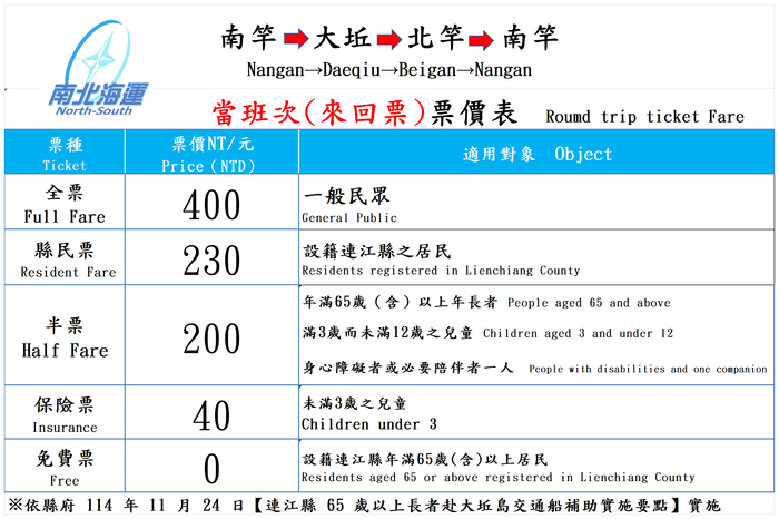 南北海運 4/1啟動南竿-大坵航班-現已開放訂位