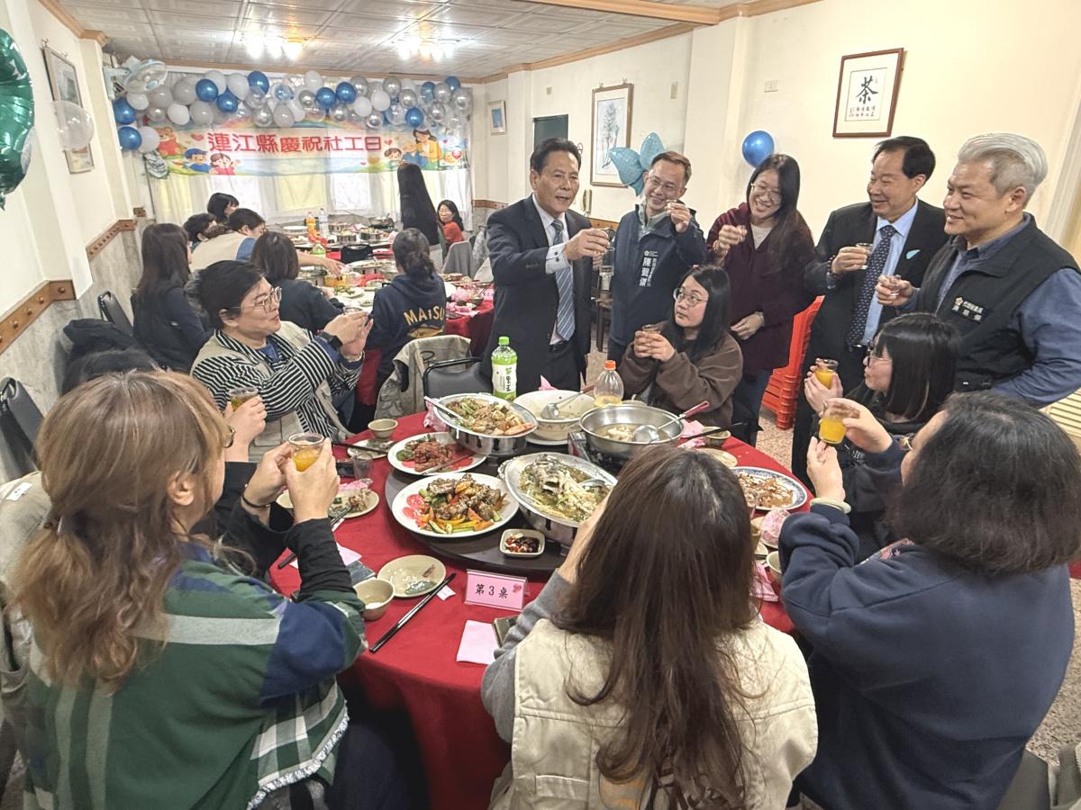 【記者王致潔報導】台灣社工日即將來臨,連江縣政府昨(28)日中午於坊廂玉餐廳舉行115年社工日感恩餐敘。本縣社工人員、公私部門社福夥伴及社安網成員齊聚一堂,縣長王忠銘、議長張永江、代理秘書長陳明傑等人特別到場致意,共同向這群在各角落默默奉獻的專業助人者,致上最高謝意與敬意。