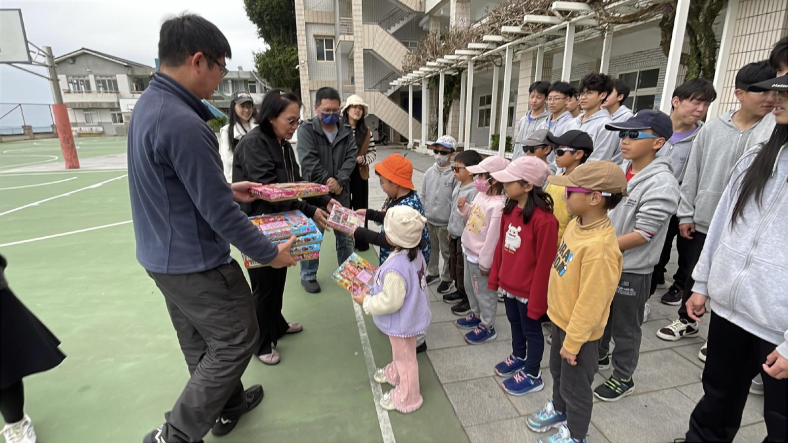 莒光鄉民代表會及敬恆國中小家長會致贈敬恆國中小的學生益智桌遊及古早味抽抽樂,祝賀青年節及兒童節快樂。(圖/文:宋幸儒)
