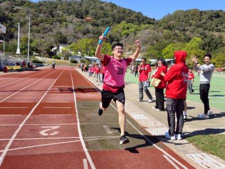 北竿塘岐國小昨(1)日於北竿綜合運動場舉辦校慶運動會,學生、家長與教師齊聚一堂,操場上各項競賽與趣味活動接續展開,笑聲與加油聲此起彼落,現場氣氛相當熱鬧。(圖:鄭禮頤)