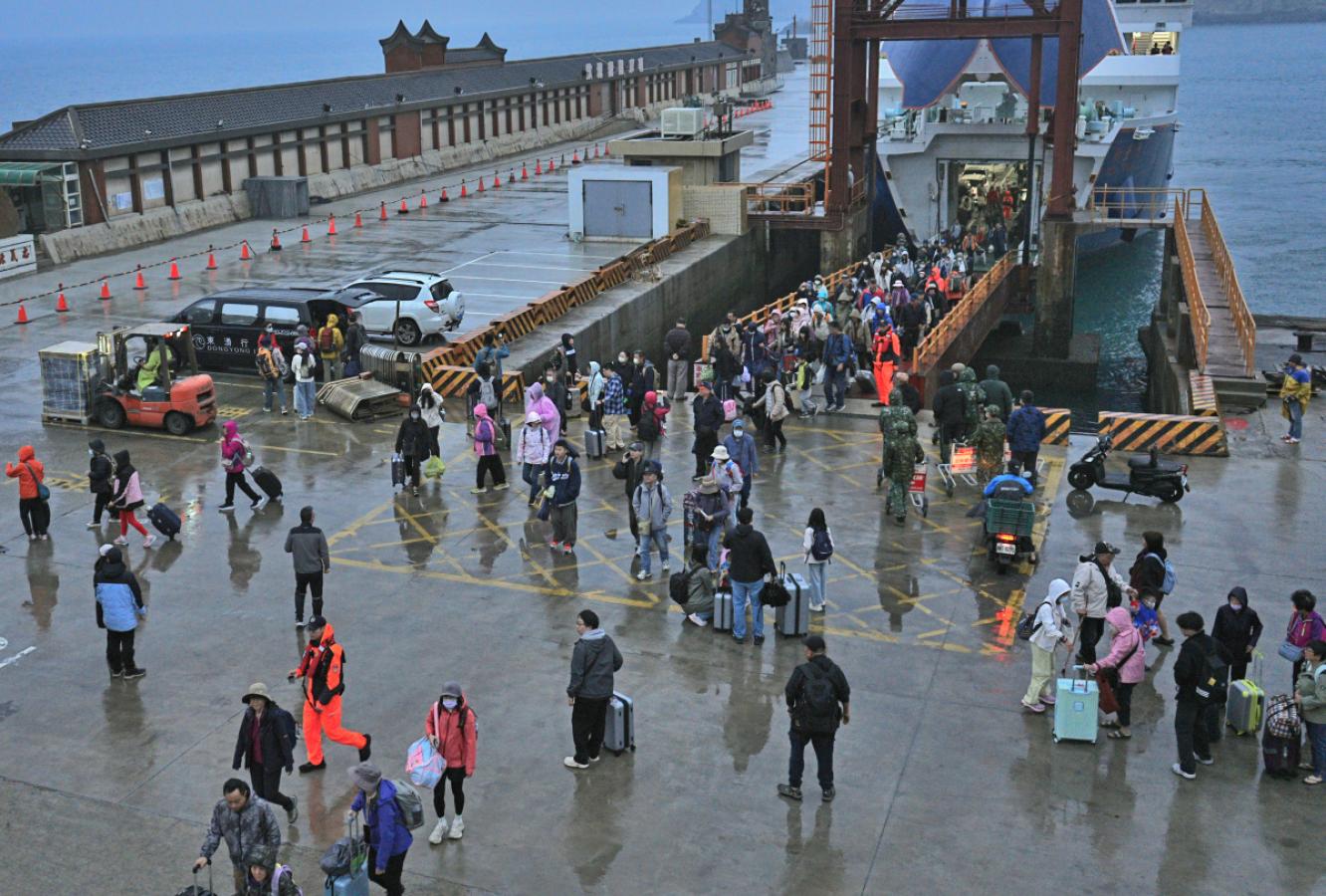 昨晚「新臺馬輪」載來570名旅客,其中近300人直達東引,4月離島旅遊熱度明顯升溫,即使細雨迷霧中,旅客行程不減、往來依舊熱絡。