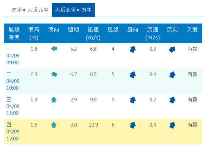 4/9【南北海運】南竿-大坵-北竿-南竿【正常開航】