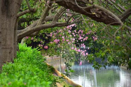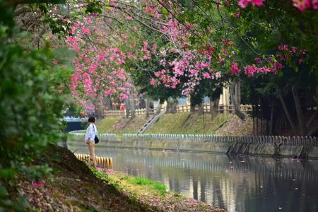 「春風又綠江南岸,明月何時照我還。」在這萬物復甦的季節,彰化的北斗河濱公園靜靜綻放著生命的美好。陽光透過樹梢,灑下斑駁的光影,彷彿在向來訪者講述這裡的故事。步道兩旁,美人樹綻放出成片的粉紅色花海,帶來沁人心脾的花香,讓每一位遊客都沉醉於生機與活力之中。