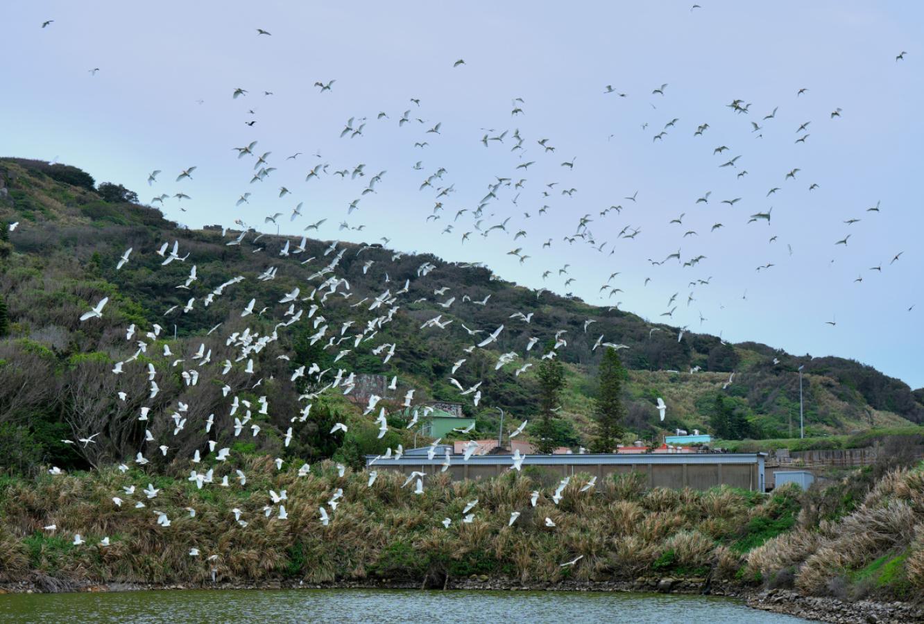 昨(8)日雨勢停歇、風力趨緩,已有部分白鷺鷥陸續離開東引;尚未離去的族群,仍以東湧水庫及上游的東湧運動公園為主要棲息地。當牠們集體振翅起飛時,白羽翻飛、氣勢磅礡,為島嶼增添一幅生動的春日風景。