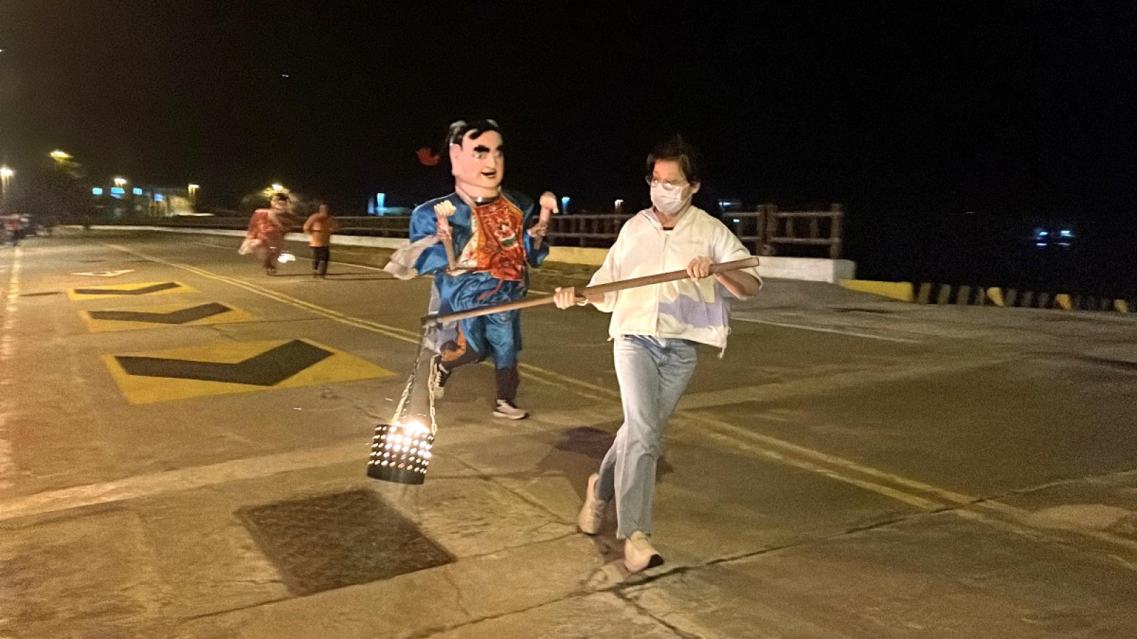 莒光獨有擺暝活動餘興節目-「跑火賽」第2場熱鬧登場,讓遊客軍民度過不一樣的夜晚。(圖/文:宋幸儒)