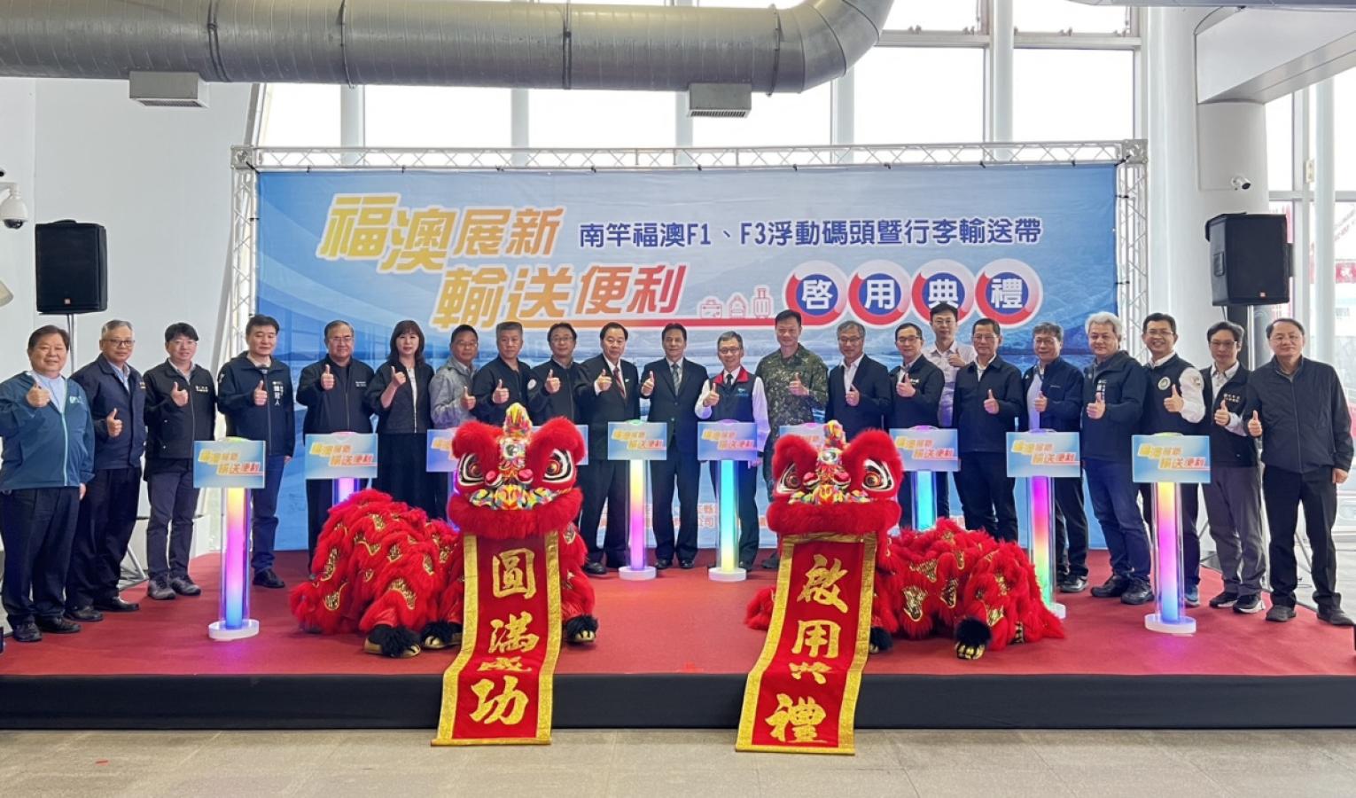 【記者馮紹夫報導】馬祖海運設施持續更新,縣府昨(16)日舉辦「南竿福澳F1、F3浮動碼頭暨福澳港旅運大樓行李輸送帶」啟用典禮,航港局斥資4億多元,完成福澳港F1、F2、F3浮動碼頭興建,以及行李輸送帶安裝,多項關鍵港埠設施正式投入運作,象徵馬祖海運門戶全面升級,邁向國際化觀光島嶼的重要里程碑。