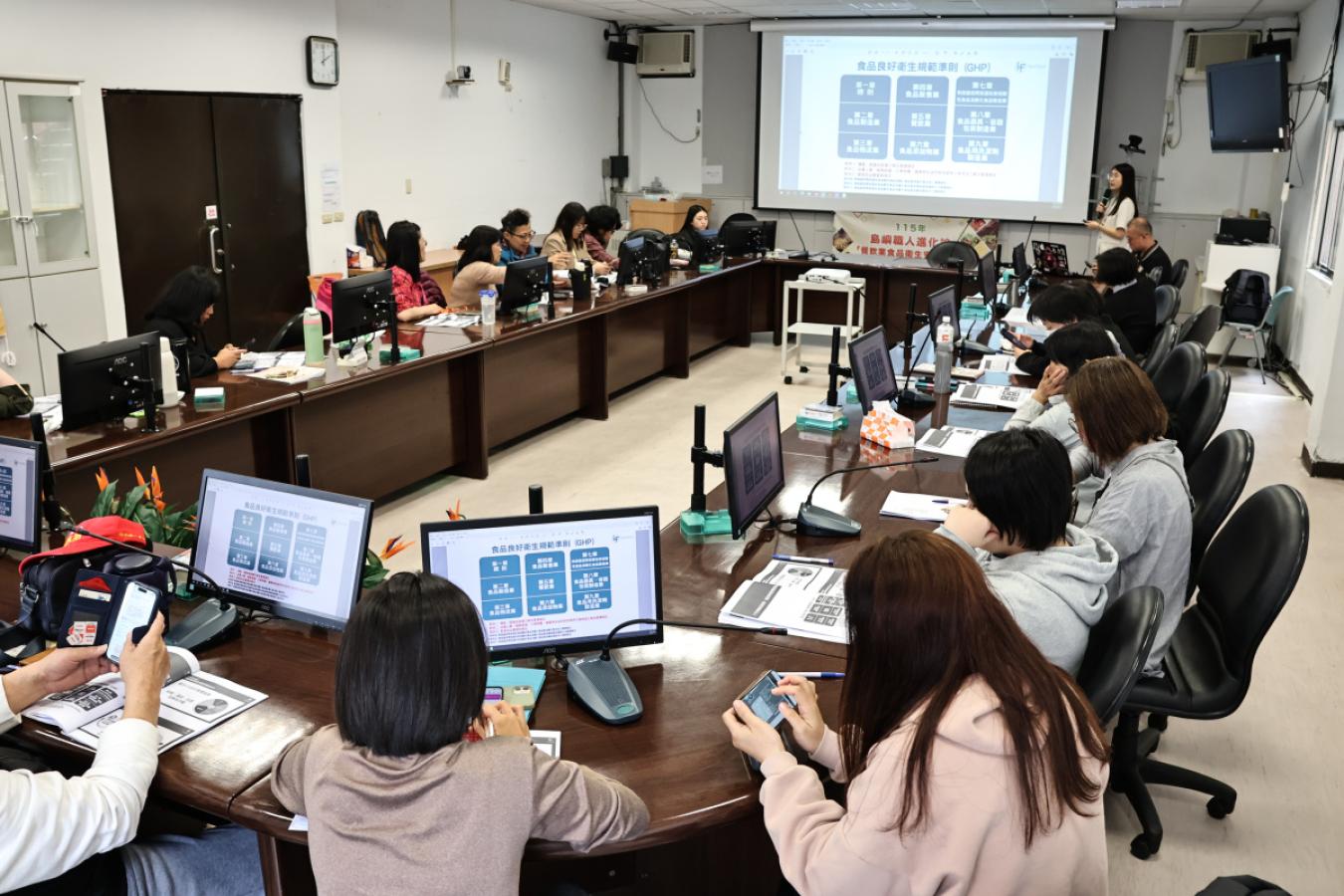 本次訓練針對馬祖餐飲現場的實務挑戰進行深度剖析。上午場由中華食品安全管制系統發展協會理事陳國華老師主講,解析諾羅病毒與廚房衛生安全風險控管,並教導如何破解交叉污染、預防食物中毒,強調透過手部衛生、人員健康管理及環境維護,守住廚房潔淨線。