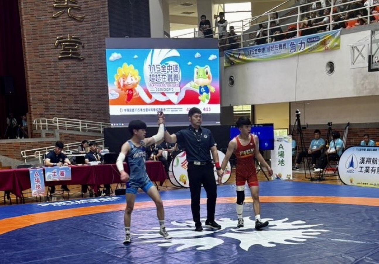 賀!馬祖高中一年級周楷晸(藍衣者)榮獲115年全中運角力高男組第一量級銀牌。