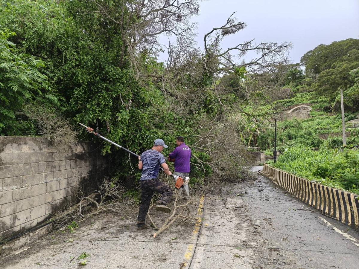 西莒23日午後一場超大雨轉大雨持續到晚上,造成25哨往西坵路段邊坡土石鬆軟,大樹倒塌,影響通行。晚間9時20分左右路人發現,立即公布在莒光布告欄群組,由於天色已晚,鄉公所立即封鎖道路避免有人誤闖發生危險,並於24日一大早由鄉公所環保人員及莒光守備大隊弟兄聯手清理,於上午10時50分左右恢復通行。