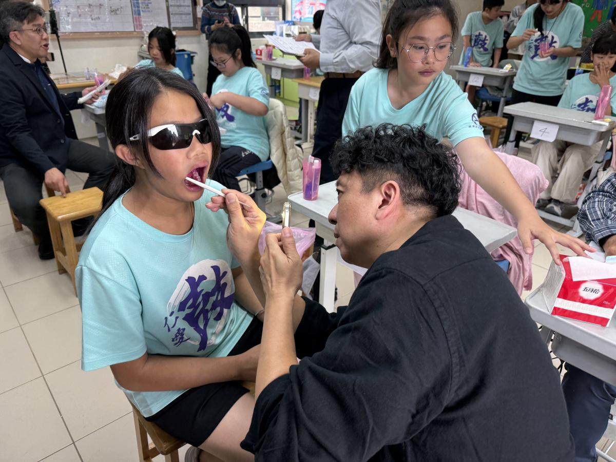 林敬修主委指出,今年中央政策重點特別轉向離島偏鄉,預計投入更多資源深耕,以縮減城鄉醫療差距。昨日訪視重點除了深入了解學校實務需求與資源缺口,亦實地檢視漱口水儲存現況、潔牙場地與設施;現場更舉辦「模擬潔牙比賽」,指導學生塗抹牙菌斑顯示劑,由醫師逐一檢視潔牙完整度,並親自教導正確刷牙與牙線操作。委員們同時關注高風險學生的衛教需求,以及學生日常攝取含糖飲品與零食的頻率。