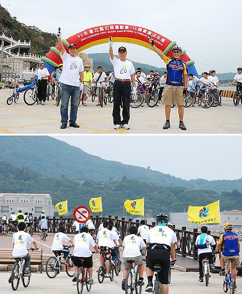 上午九時一到,由副縣長林星寶、議長陳貴忠及功學社董事長謝正寬共同鳴槍,謝正寬現在同時也是中華民國單車安全協會及單車學校校長,去年八月曾經來馬在縣長的陪同下,騎車繞島一周,這次則是與夫人一起單純的來馬自由行,昨天他也騎著一台小摺與大家一起騎車。