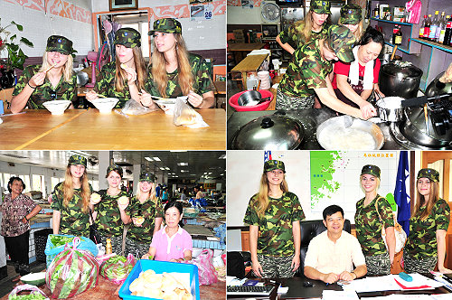 昨天行程相當特別,比照阿兵哥一大早七時就起身準備,前往介壽獅子市場感受一下馬祖傳統市場的熱鬧氣氛;「俄羅斯三姬」一點都不害怕市場的複雜腥味,而且對每個攤位都相當好奇,最後選定傳統美食鼎邊糊及繼光餅當作早餐,邊喝鼎邊糊、邊吃繼光餅,也對鼎邊糊的製作過程充滿興趣,老闆娘是大方秀才藝,還拉著三姬的手親自下廚做一碗,讓她們直呼好神奇,也特別去繼光餅攤位當「看板娘」,為老闆娘叫賣助陣!