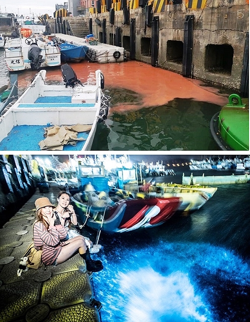 赤潮12日上午起框在福澳漁港區內,夜間藍眼淚大爆發,13日消失無蹤。(圖:周小馬提供)
