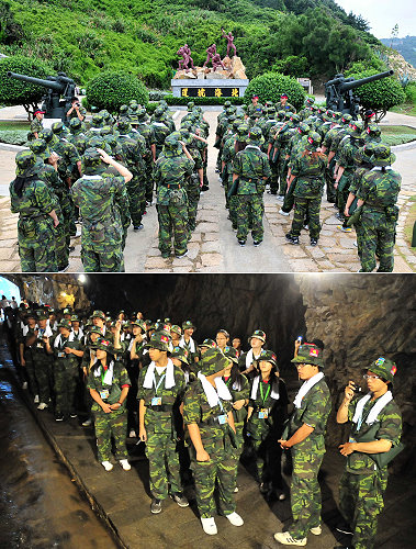 【記者曹重偉/南竿報導】全民國防教育暑期馬祖戰鬥營昨天展開第三梯次的馬祖訓練課程,上午完成報到及開訓後,於下午展開第一項馬祖的活動,就是「古戰場憑弔」,兵分三路參觀馬管處、大漢據點、北海坑道、鐵堡等觀光及軍事據點,尤其是北海坑道的雄偉壯闊,都市長大的大學生們直呼嘆為觀止,手上相機也是拍個不停,讓來馬學員的第一天就充滿了感動。