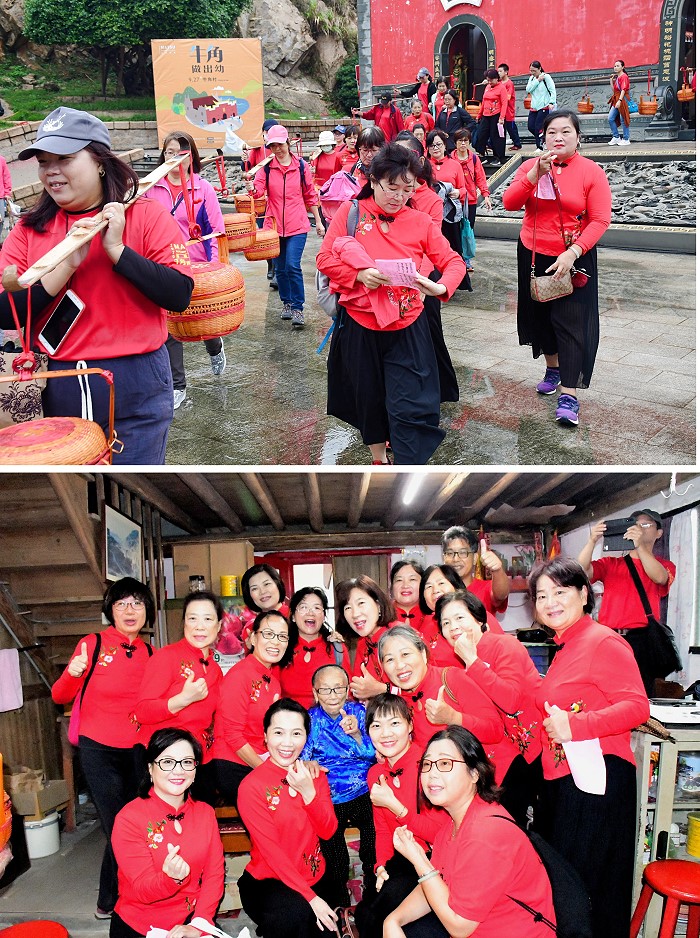 秋慶首部曲「牛角做出幼」熱鬧登場,今年結合古蹟日推出四喜出幼,27日上午壓軸喜娘送喜,學員們組成盛大祝賀隊伍,依序拜訪村中有80歲以上長者、新人及新生兒家戶,獻上吉祥祝福話語。(圖/文:曹重偉)