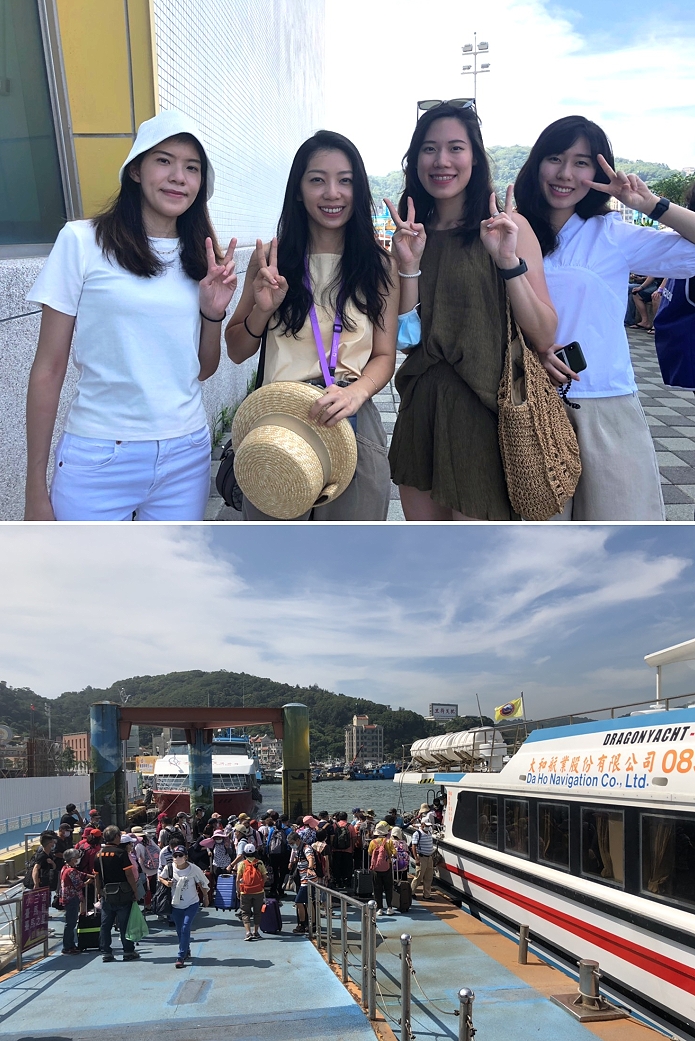 高雄港都正妹熱情不減17日搭乘「探索夢號」衝遊馬祖,前往北竿遊客浮動碼頭排隊人潮。(圖:馬祖日報)