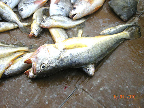 一度有捕獲半野生的黃魚,漁販說,可能是颱風天被浪衝到海中的養殖黃魚,跟純野生的亦不同。