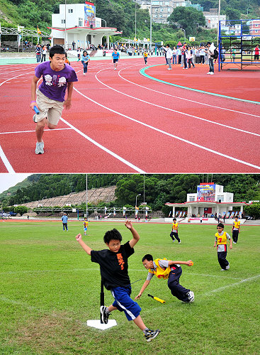 校際運動會最後一天賽事進行國小組樂樂棒球決賽及國中組大隊接力,讓福澳運動場熱力燃燒。(圖/文:曹重偉)