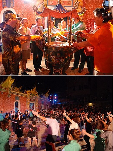 鐵板燒塔節昨晚燦爛引爆馬祖中秋夜!在府會首長貴賓們共同燃起火炬進行燒塔儀式後,古踏民族舞團、川劇變臉及地方表演團隊等組合而成的民俗晚會,讓馬祖的中秋夜熱鬧不已,吸引了上千人擠爆鐵板天后宮廣場。(圖/文:劉秋月)