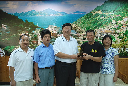 昨天李小石在夫人林青青的陪同下,在縣長陳雪生的手中接下「馬祖之光」的獎牌,李小石謙虛的表示,這是媽祖的神力保佑,更感謝母縣鄉親的大力支持,因此才能順利登頂成功。