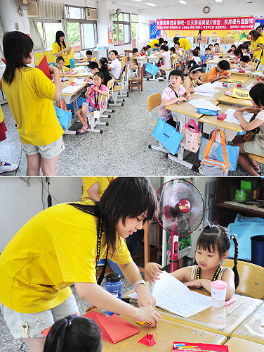 育達商業技術學院八日起,在介壽國小舉辦一連三天的「功夫熊貓勇闖介壽—教育優先區營隊」夏令營活動。(圖/文:曹重偉)
