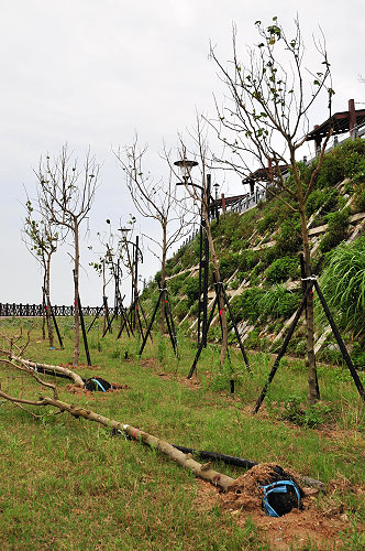 經當地民眾在現場清理時發現,原來這批種植在福清自行車步道入口處的幾株路樹,「樹苗」每株都近二公尺,而且是上星期才剛種好的,但是被吹倒後才發現一個大問題,就是在植樹時,挖的深度根本不夠,在抓附力嚴重不足之下,就很無辜的成為輕颱蓮花的災害「業績」,也強調「樹可不是這樣種的」,希望廠商儘快出面處理。