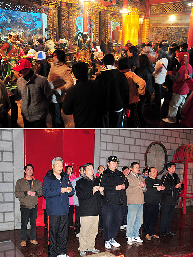 【本報訊】馬祖境天后宮除夕夜「搶頭香、送金幣」活動今年是第二年舉辦,現場人氣是再衝新高,吸引近三百位善男信女一起來搶頭香,宮內大廳是擠得水洩不通,原本準備的二百個根本不夠發,眼見民眾盛情難卻,廟方只好「大方送」、全部有獎;不少民眾說,參加這個活動初一可以不用起大早還有金幣可拿,明年當然還要再來!縣長陳雪生伉儷除夕當晚也前往各村廟宇上香,虔祝地方風調雨順,平安吉祥。