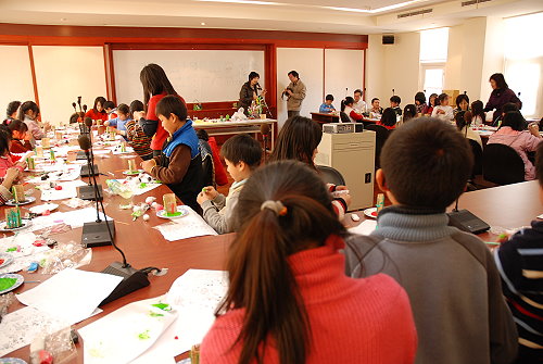 大墩工藝師余致潤親自教授彩塑DIY課程,大人、小孩都來學;另一邊的中國結研習,有興趣的人也不少,過年味濃厚的中國結,頗有應景氣氛。(圖/文:劉秋月)