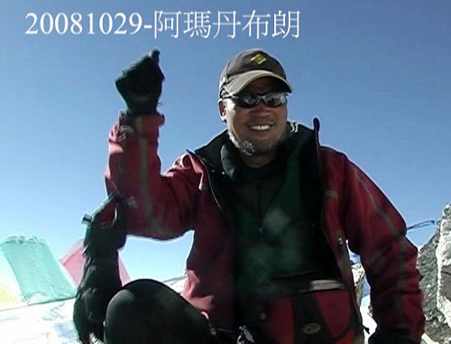 「登山怪傑」畫家李小石返鄉充電,特帶來「超越巔峰—李小石山路歷程藝術講座」,圖為他十月成功攀登阿瑪丹布朗(6856M)的留影。(圖:李小石提供)